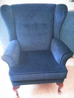 These chairs had been used in the customer's family for years and they wanted to bring them back into use for may years to come. The chairs were fully re-upholstered with new padding and new cushions. The fabric is a dogtooth wool from 'The isle Mill"